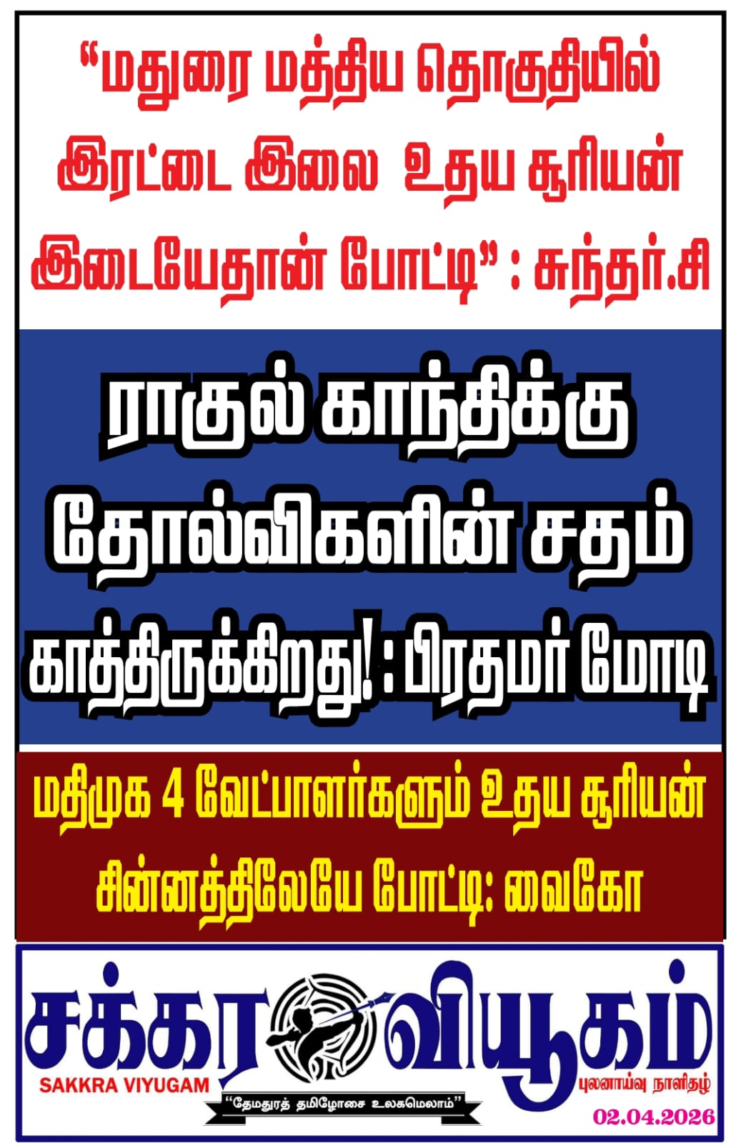 02.04.2026 SAKKRA VIYUGAM PDFBy news / April 5, 2026 02.04.06 SAKRA VIYUGAM APR 2 2026Download Whatsapp Share Post Copy