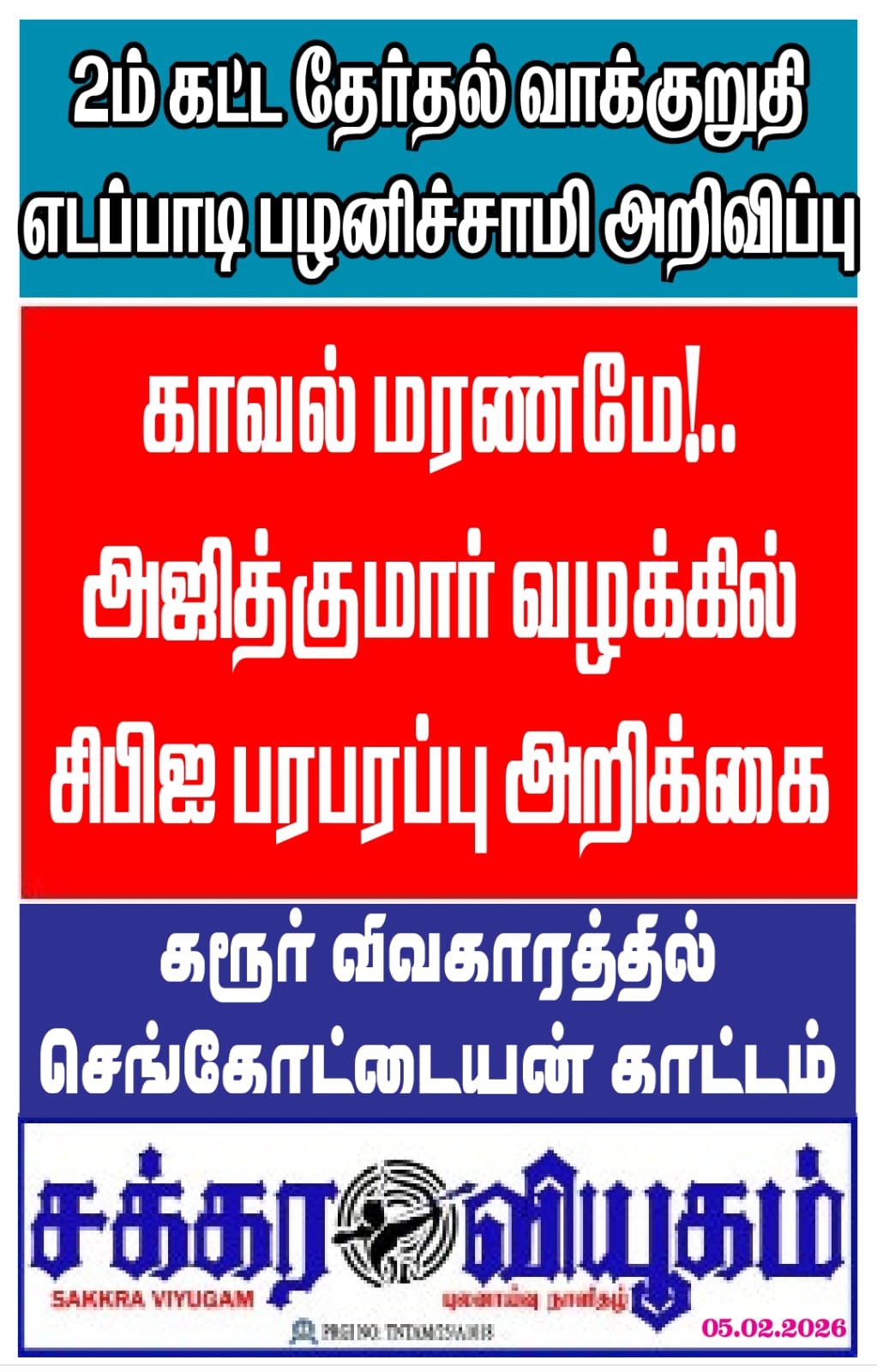 05.02.2026 SAKKRA VIYUGAM PDFBy news / February 5, 2026 05 SAKRA VIYUGAM FEBRUARY 5, 2026 1Download Whatsapp Share Post Copy