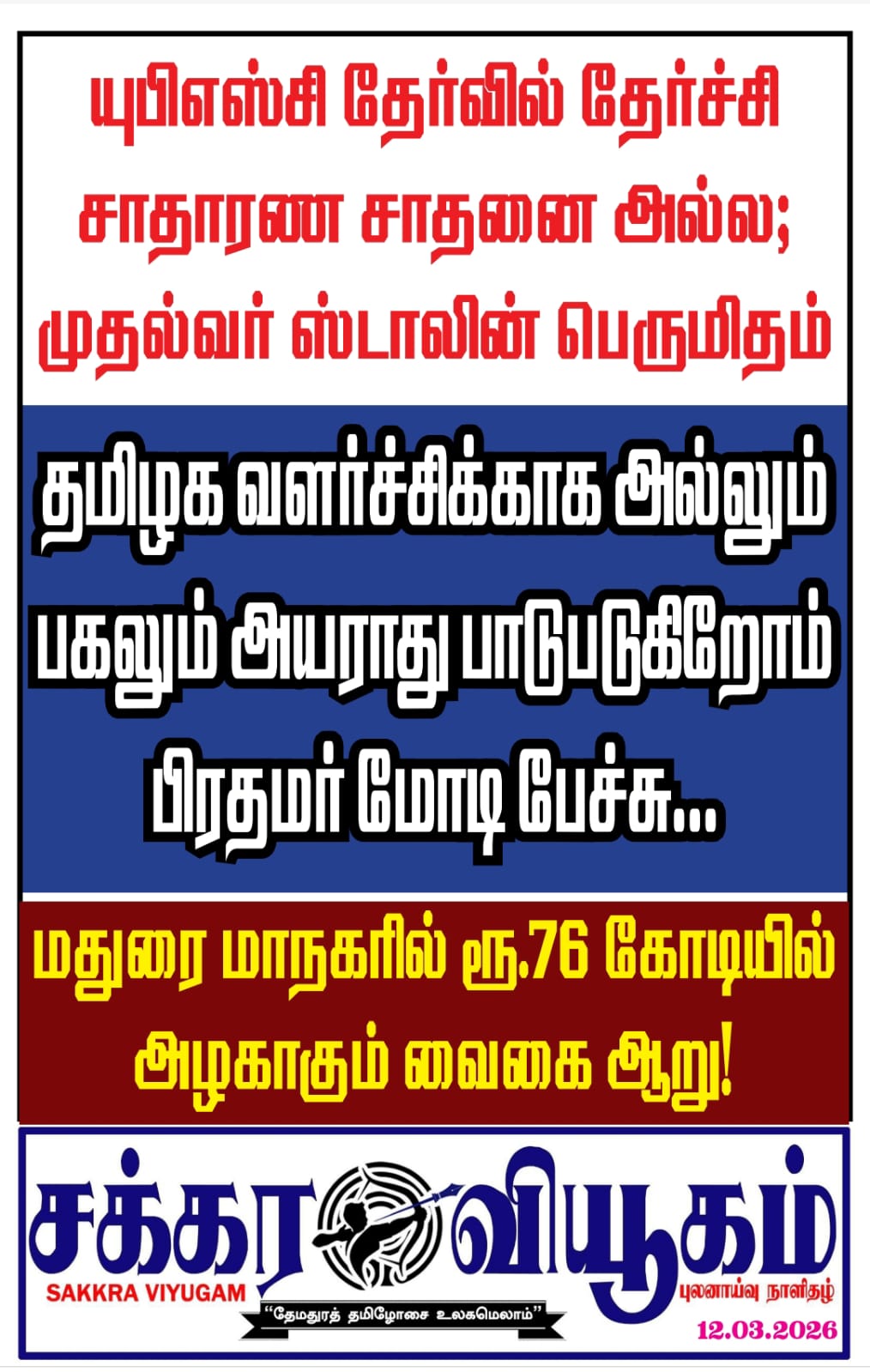 12.03.2026 SAKKRA VIYUGAM PDFBy news / March 12, 2026 SAKRA VIYUGAM MAR 12. 2026 f (3)Download Whatsapp Share Post Copy