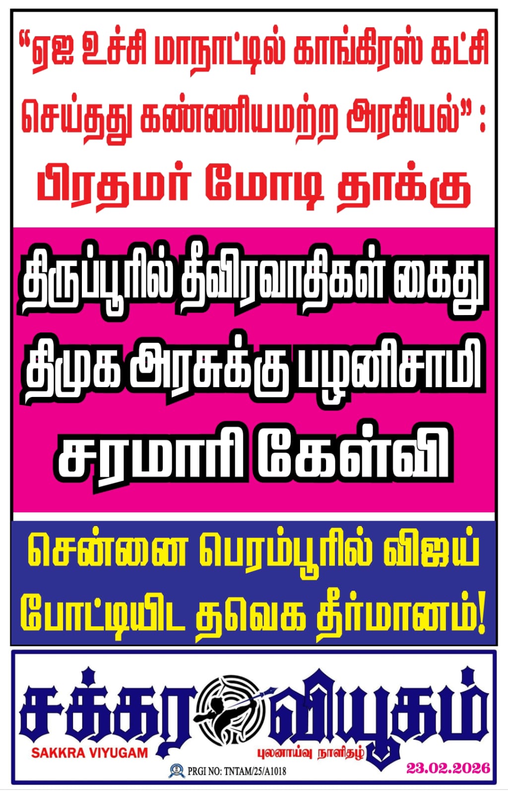 23.02.2026 SAKKRA VIYUGAM PDFBy news / February 23, 2026 23.02 SAKRA VIYUGAM FEB 23, 2026Download Whatsapp Share Post Copy