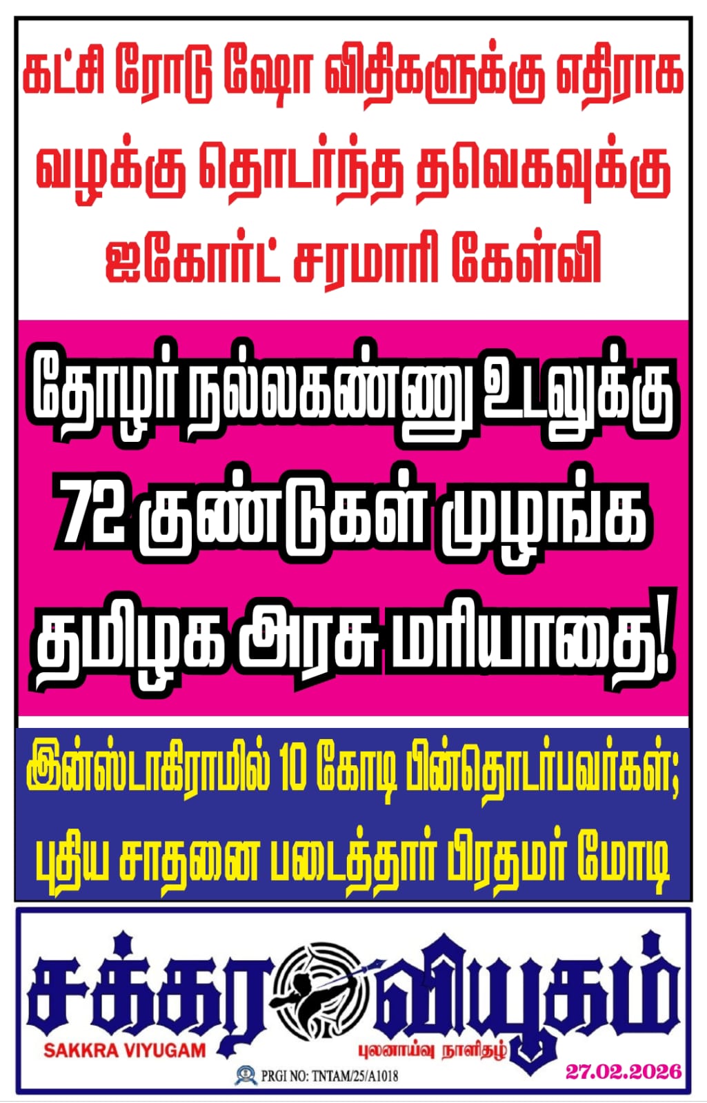 26.02.2026 SAKKRA VIYUGAM PDFBy news / February 27, 2026 SAKRA VIYUGAM FEB 26, 2026Download Whatsapp Share Post Copy