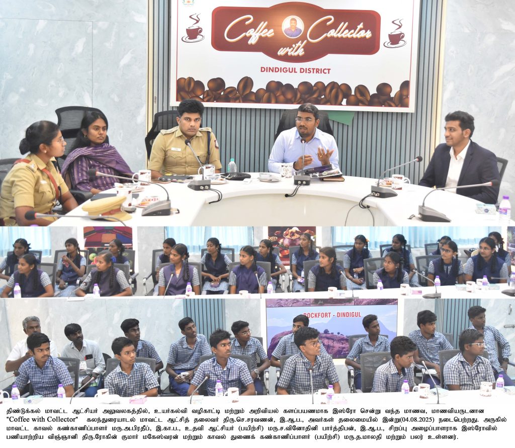 ‘COFFEE WITH COLLECTOR’ திண்டுக்கல் மாவட்ட ஆட்சியர் அலுவலக கூட்டரங்கில் ஒவ்வொரு வாரமும் திங்கள் கிழமை பிற்பகல் கலந்துரையாடல் நிகழ்ச்சி நடைபெற்று வருகிறது.By news / August 5, 2025 Whatsapp Share Post Copy
